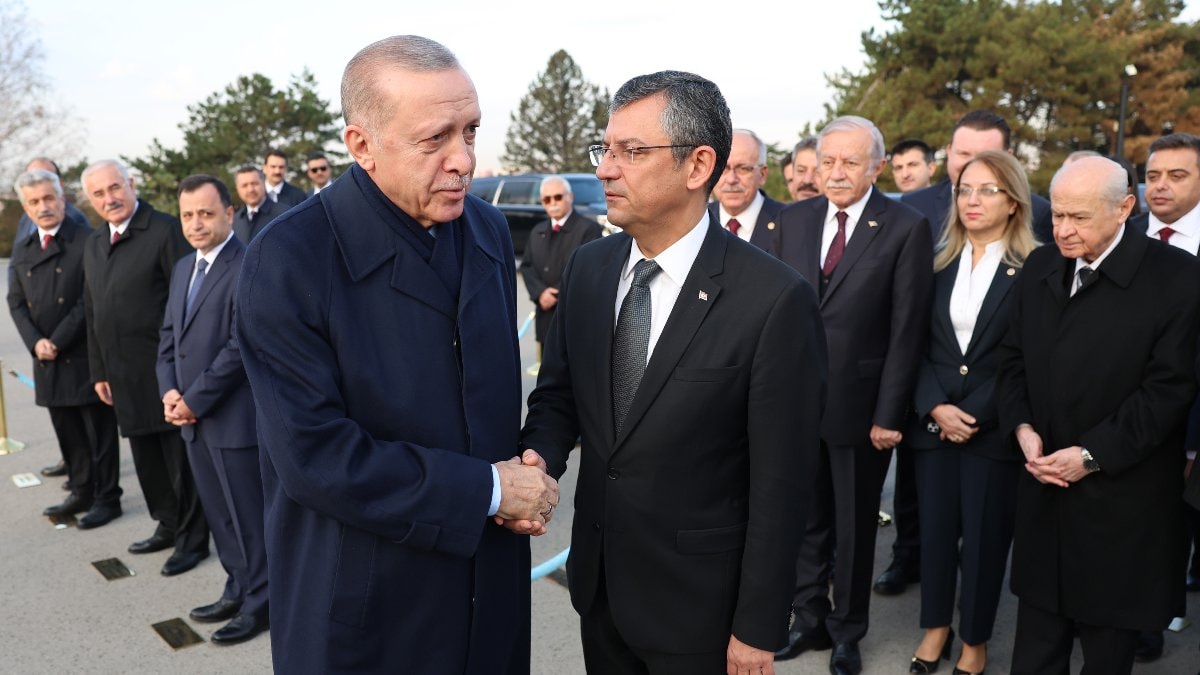 4-5 Kasım'da yapılan kurultayda Kemal Kılıçdaroğlu'nu yenerek CHP'nin yeni genel başkanı olan Özgür Özel, Cumhurbaşkanı Erdoğan ile ilk kez selamlaştı.