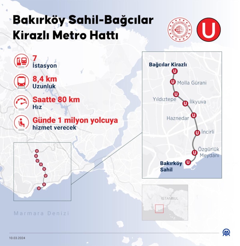 Bakırköy Sahil-Bahçelievler-Güngören-Bağcılar Kirazlı Metro Hattı'nın detayları