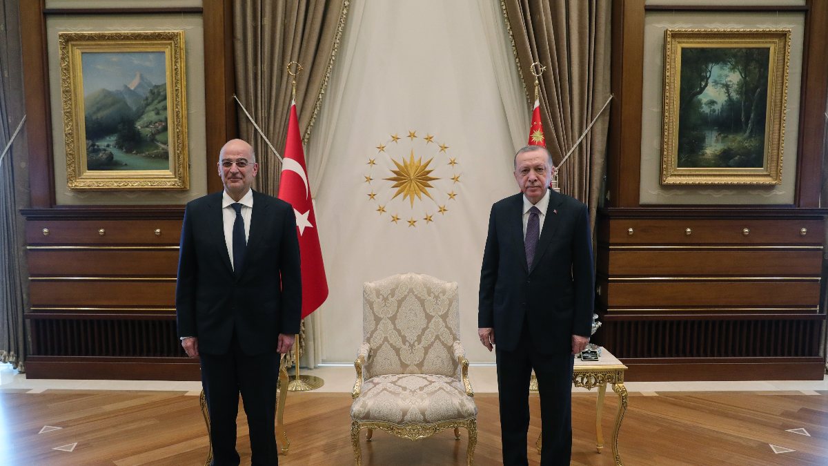 Cumhurbaşkanı Erdoğan, Yunanistan Dışişleri Bakanı Dendias'ı kabul etti VİDEO
