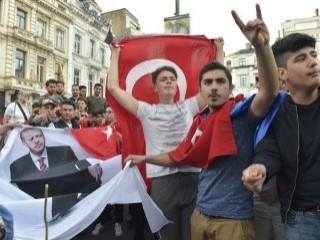 Brüksel Belediye Başkanı Yvan Mayeur'ın "Herhangi bir toplanmaya izin vermeyeceği" yönündeki açıklamasına rağmen, Cumhurbaşkanı Erdoğan'ı karşılamak isteyen Türkler, Steigenberger Oteli'nin önünde akşam saatlerinde bir araya geldi.