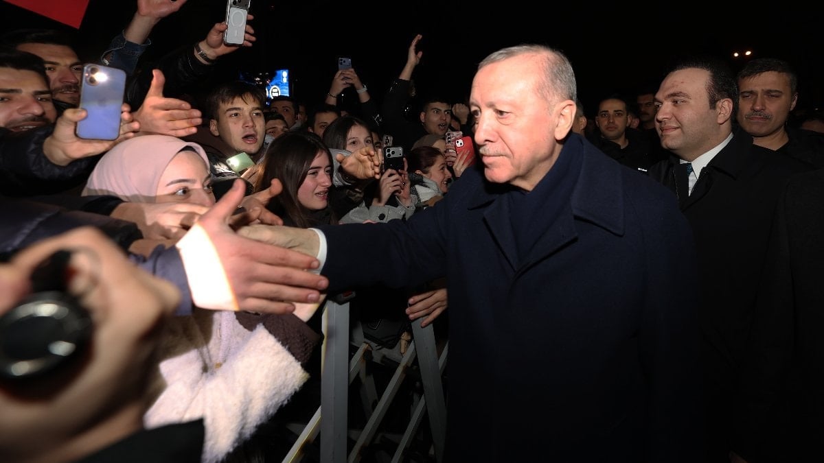 Hep birlikte, "İlle de sen" şarkısını söyleyen gençler, Erdoğan'ın makam aracını çiçeklerle süsledi.