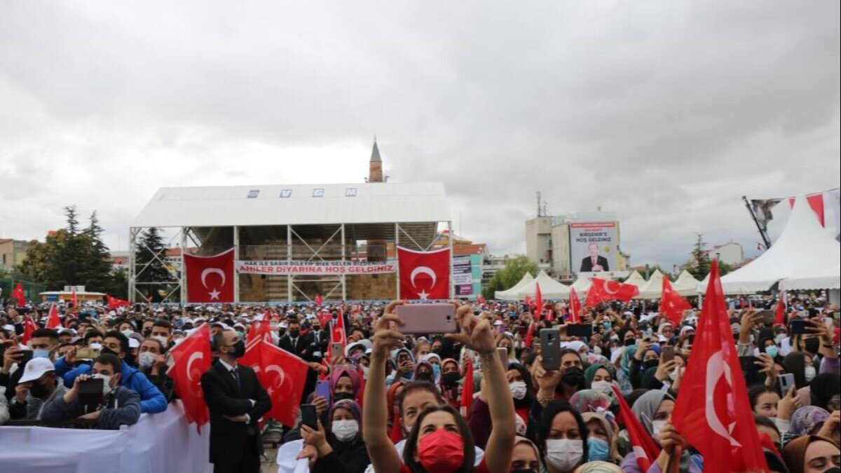 Erdoğan kalabalığı selamlayarak, "Maşallah. Maşallah. Aziz milletim, bizi bağrına basan sevgili Kırşehirliler.. Sizleri; hasretle, muhabbetle selamlıyorum." sözleriyle konuşmasına başladı.