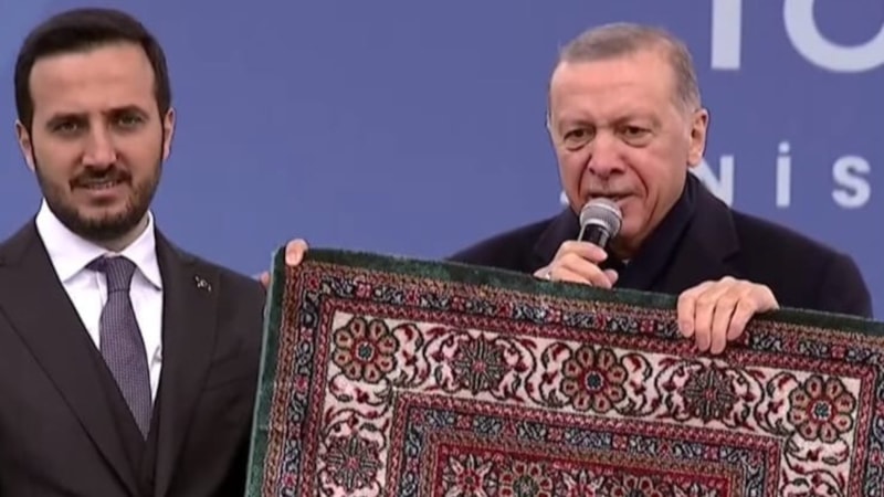 Hediyesini meydanda toplanan binlerce kişiye gösteren Cumhurbaşkanı Erdoğan, “Bu seccade ayakkabılarla basmak için değil. 15 Mayıs’ta inşallah şükür namazını bu seccadede kılabiliriz.” dedi.