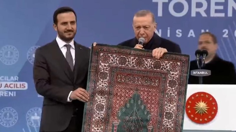 Toplu açılış töreni için gittiği Bağcılar’da binlerce kişiye seslenen Cumhurbaşkanı Recep Tayyip Erdoğan’a konuşmasının ardından seccade hediye edildi. Cumhurbaşkanı Erdoğan, “Bu seccade ayakkabılarla basmak için değil. 15 Mayıs’ta inşallah şükür namazını bu seccadede kılabiliriz” dedi.