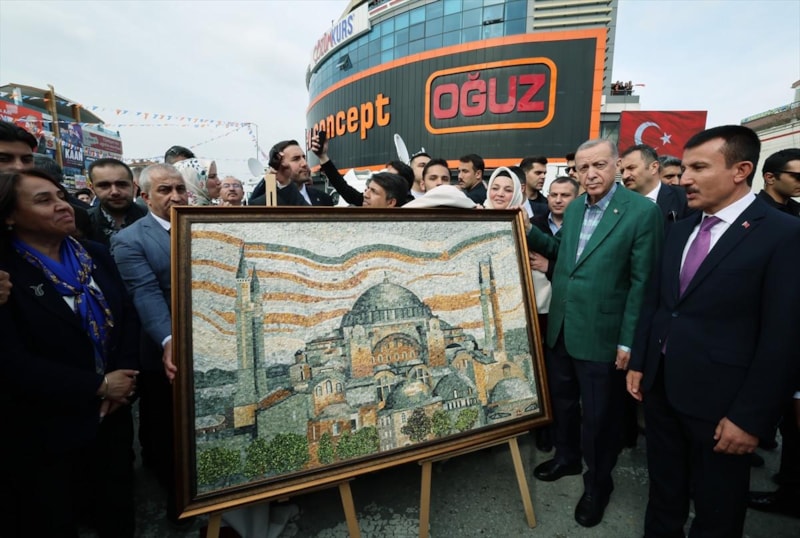 Miting bitiminde de Cumhurbaşkanına tablo takdim edildi.