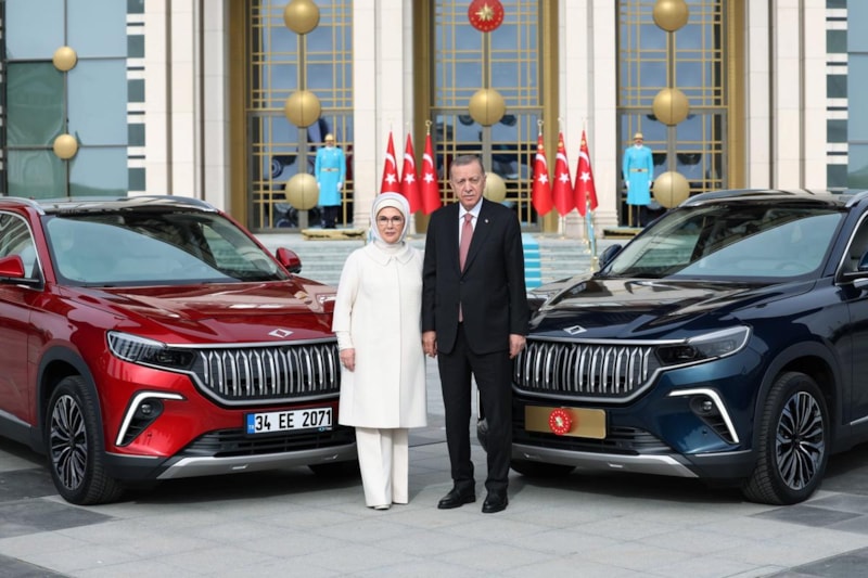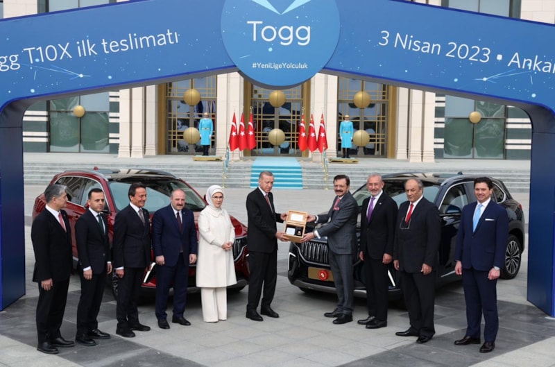 Biri Anadolu şahsi kullanım için, diğeri Gemlik makam aracı olarak kullanımı için Cumhurbaşkanı Recep Tayyip Erdoğan'a takdim edilecek 2 yerli ve milli araç Togg, Cumhurbaşkanlığı Külliyesi önüne çekildi. Cumhurbaşkanı Erdoğan ve eşi Emine Erdoğan araçları teslim aldı.
