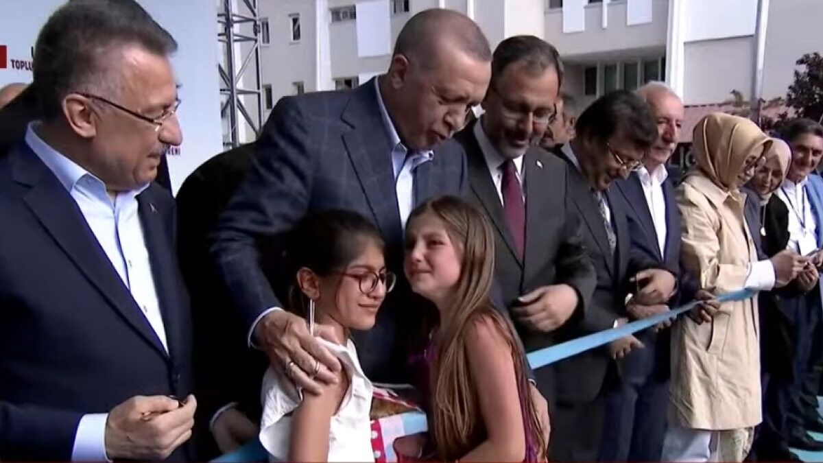 Erdoğan, kurdele kesim esnasında kendisini çok sevdiği söyleyen küçük kızları "Ağlamak yok, cici kızları alalım buraya" diyerek sahneye davet etti.