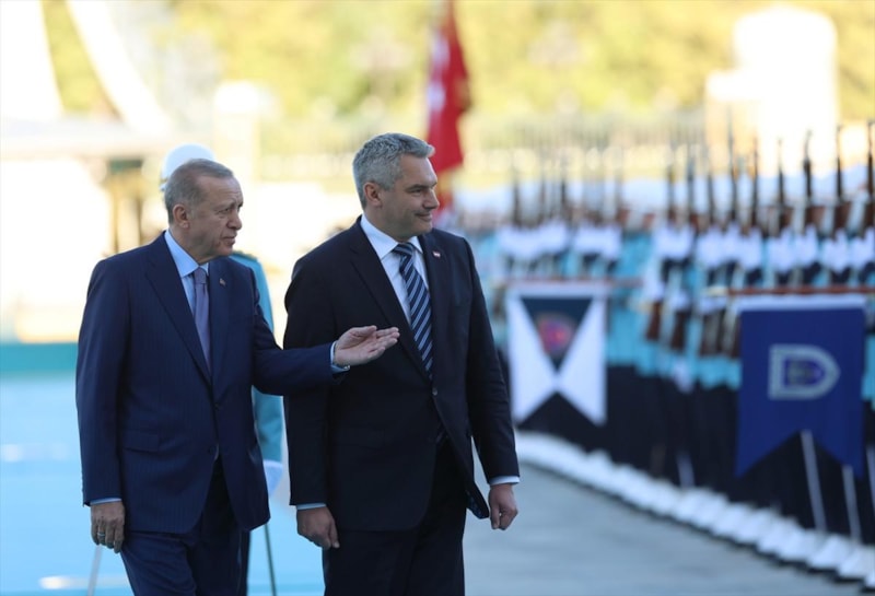 Cumhurbaşkanı Recep Tayyip Erdoğan, Avusturya Başbakanı Karl Nehammer'i ağırlıyor.