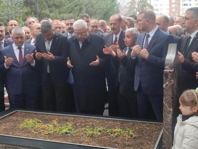 MHP Genel Başkan Yardımcısı Yalçın, partililerle ile birlikte dua ederken Türkeş'in mezarına kırmızı karanfiller bırakıp, su döktü.