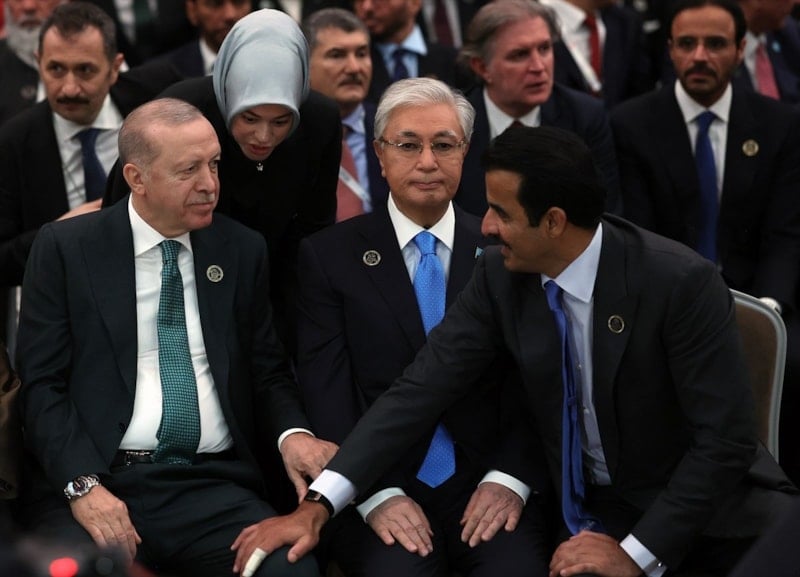Akabinde Kuzey Kıbrıs Türk Cumhuriyeti (KKTC) Başbakanı Ünal Üstel ile tokalaşan Cumhurbaşkanı Erdoğan sırasıyla; Cumhurbaşkanı İlham Aliyev, Pakistan Başbakanı Şahbaz Şerif, Katar Emiri Şeyh Temim bin Hamed Al Sani, Kazakistan Cumhurbaşkanı Kasım Cömert Tokayev, Sırbistan Başbakanı Duro Macut ve Irak Kürt Bölgesel Yönetimi Başkanı Neçirvan Barzani ile sohbet etti.