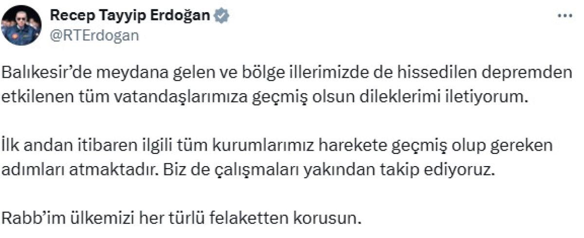Balıkesir’de meydana gelen ve bölge illerimizde de hissedilen depremden etkilenen tüm vatandaşlarımıza geçmiş olsun dileklerimi iletiyorum.