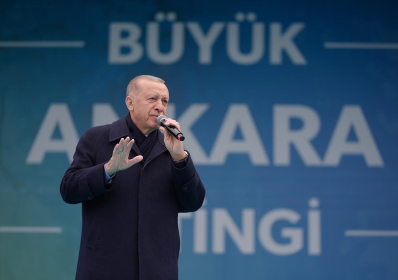 Ankara mitinginde konuşan Cumhurbaşkanı Erdoğan, ittifak kuran CHP ile DEM Parti'yi eleştirerek, "Bu seçimde adını koyamadıkları kirli bir pazarlığa giriştiler. Ortada bir matruşka ittifakı var" dedi.