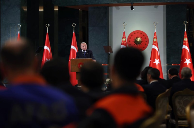 "Milletimizin tüm imkanlarıyla ilk andan itibaren deprem bölgesine koştuğuna emin olun. Siz hepiniz ilk andan itibaren oradaydınız." diyen Erdoğan, sözlerine şöyle devam etti: