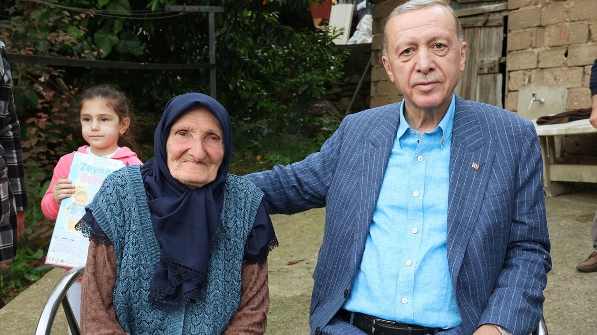 Burada mahalle sakinleri tarafından sevgi gösterileriyle karşılanan Erdoğan, 85 yaşındaki Baloğlu'na ziyarette bulundu.