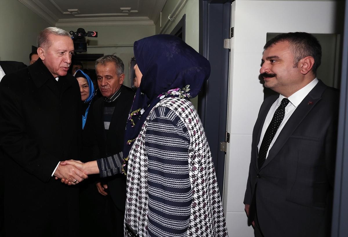 Cumhurbaşkanı Erdoğan, ziyaretin ardından evin önünde kendisini bekleyen vatandaşları selamlayarak sohbet etti, çocuklara hediyeler verdi.