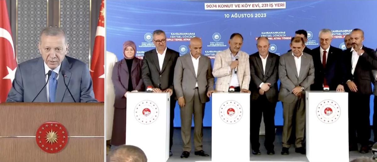 Erdoğan'ın katılımıyla düzenlenen programa depremzedeler için 250 konutluk yardım yapan Galatasaray Başkanı Dursun Özbek de katıldı.
