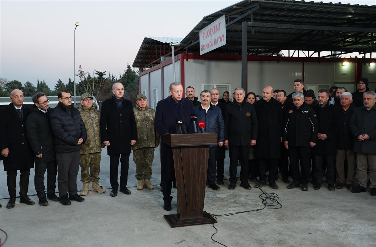 Cumhurbaşkanı Erdoğan burada kameraların karşısına geçerek Hatay'daki son duruma ilişkin bilgiler verdi.