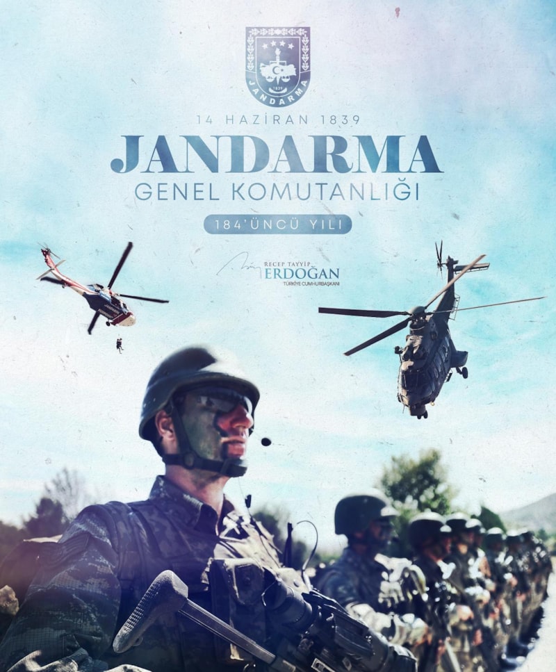 Cumhurbaşkanı Recep Tayyip Erdoğan, Jandarma Genel Komutanlığının 184'üncü kuruluş yıl dönümünü kutladı.