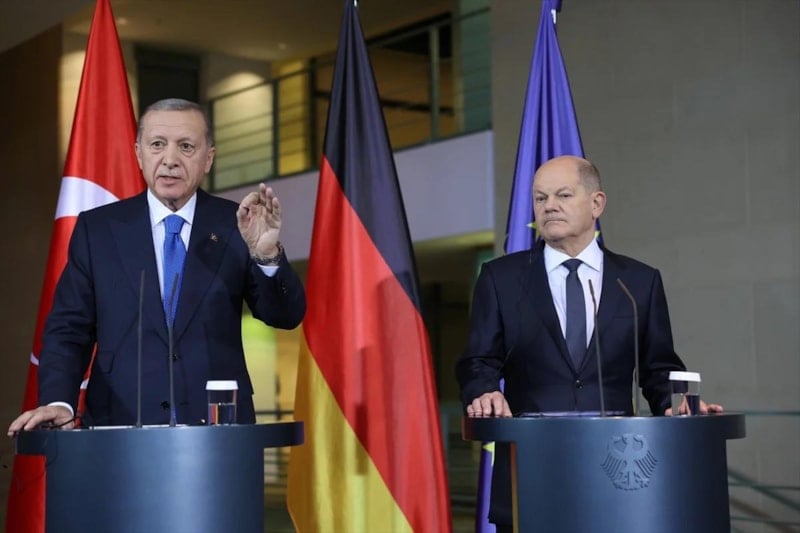 Görüşmenin ardından Cumhurbaşkanı Erdoğan, Almanya Başbakanı Olaf Scholz ile bir araya geldi.