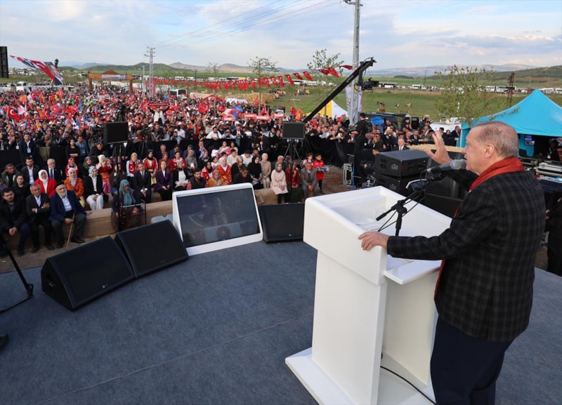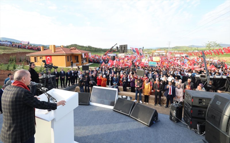 Değerli kardeşlerim şu anda teslimi yapacağız köy evleri ile bir adımı açık ve net attık. Ama önceliğimizin başına Karadeniz gazının geçirdik mi geçirdik. Şimdi ise Karadeniz gazımın ve petrol gelirlerimi bir kısmı ile Aile ve Gençlik Bankamızı kuruyoruz. Bunlarla artık Türkiye çok daha vakur geleceğe yürüyor. Bu banka ile ev hanımların emekliliğini ve gençliğimizin istihdamına kadar geniş bir alanda etkili oluyor. AK Parti LGBT'ye karşı mı, Cumhur İttifakı LGBT'ye karşı mı? Bunlar LGBT'ci bunlar bizim kutsal aile yapımıza karşı. 14 Mayıs bunlara ders verme günü olacaktır. bugüne kadar girdiğimiz her mücadeleyi millerimizle aynı mücadeleyi vererek kazandık. İnşallah 14 Mayıs'ta milletimizle zafere adım atarak deprem bölgesinde konutlarımızın yapımına teslim törenlerine devam edeceğiz.