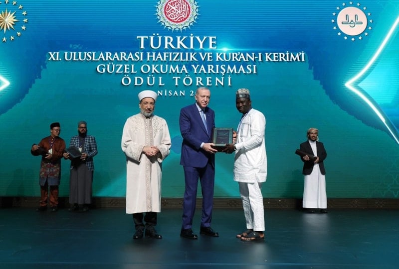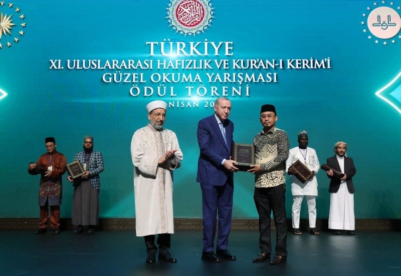 Cumhurbaşkanı Erdoğan akabinde de Beştepe Millet Kongre ve Kültür Merkezi’nde “Türkiye 11. Uluslararası Hafızlık ve Kur’an-ı Kerim’i Güzel Okuma Yarışması Ödül Töreni”ne katıldı.