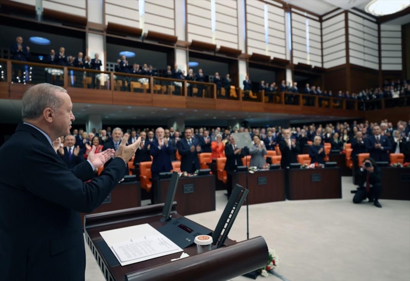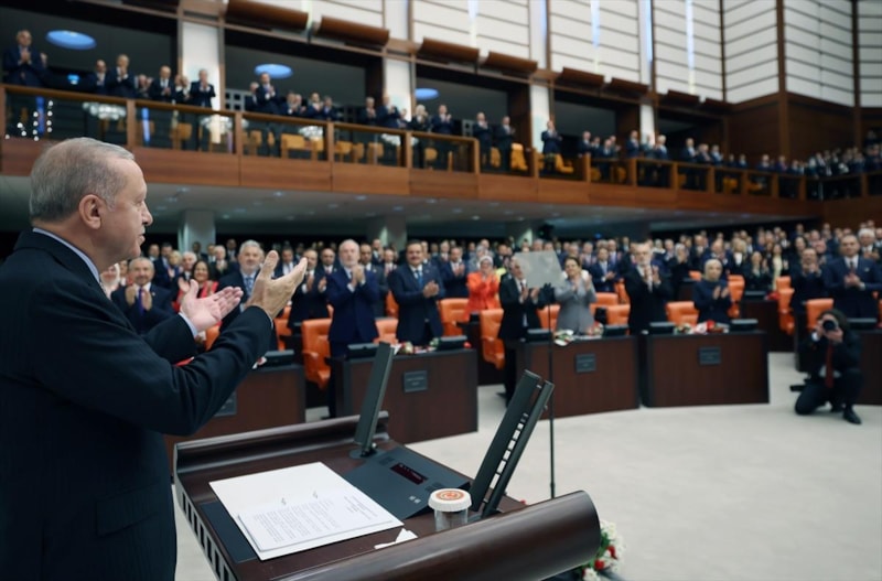Akabinde ise Meclis'e Cumhurbaşkanı Recep Tayyip Erdoğan geldi.
