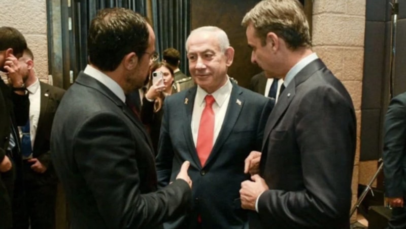 Batı Kudüs'te bir araya gelen İsrail Başbakanı Binyamin Netanyahu, Yunanistan Başbakanı Kiryakos Miçotakis ve Güney Kıbrıs Rum Kesimi (GKRY) lideri Nikos Hristodulidis ortak basın toplantısı düzenledi.