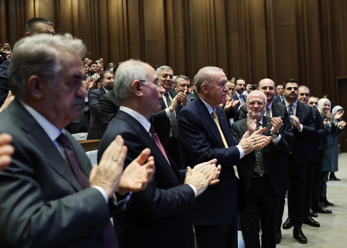 Erdoğan, il başkanları ve partililer tarafından dakikalarca ayakta alkışlandı.