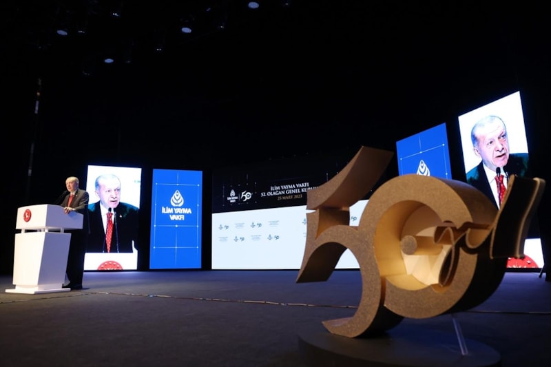 Cumhurbaşkanı Recep Tayyip Erdoğan, Atatürk Kültür Merkezi'nde düzenlenen İlim Yayma Vakfı 52. Genel Kurulu'nda katılımcılara seslendi.