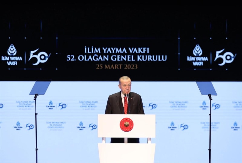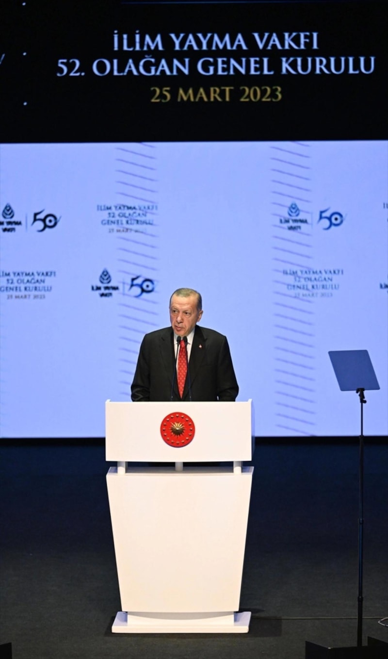 İlim Yayma Vakfı'nın Genel Kurulu'nda seçimlere ilişkin açıklama yapan Cumhurbaşkanı Erdoğan, 14 Mayıs seçimlerinin tarihi bir yol ayrımı olduğunu belirtti.
