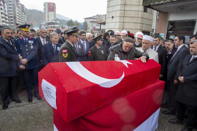 Ankara'daki Mürted Hava Meydan Komutanlığındaki törenin ardından 54 yaşındaki şehit Hava Uçak Bakım Astsubay Kıdemli Başçavuş Nuri Özcan'ın cenazesi, Zonguldak Havalimanı'na getirildi.