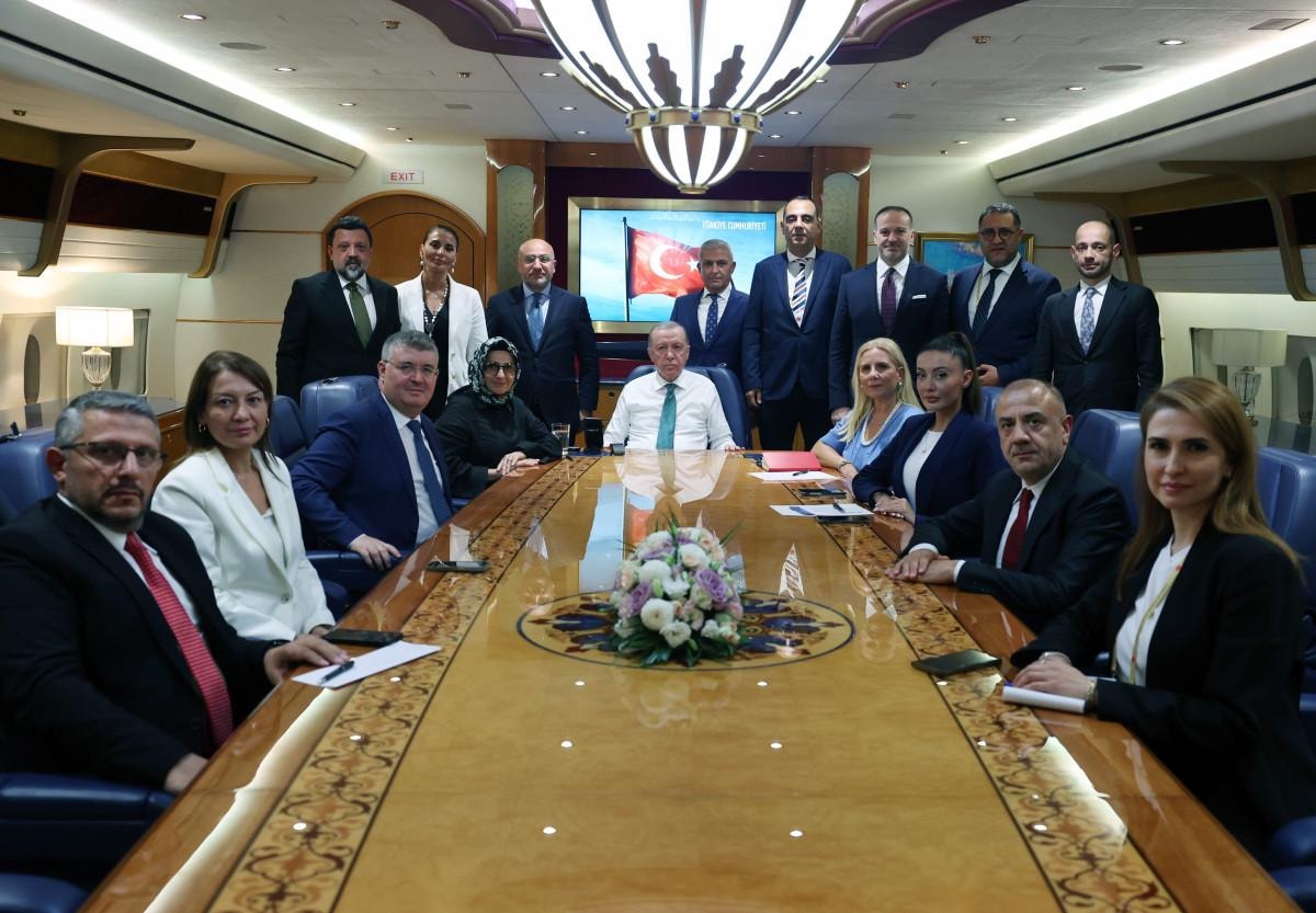 Yurda dönen Erdoğan, dönüş yolunda Ensonhaber Medya Grup Başkanı Serkan Kalemciler'in de aralarında bulunduğu gazetecilere açıklamalarda bulunup, soruları yanıtladı.