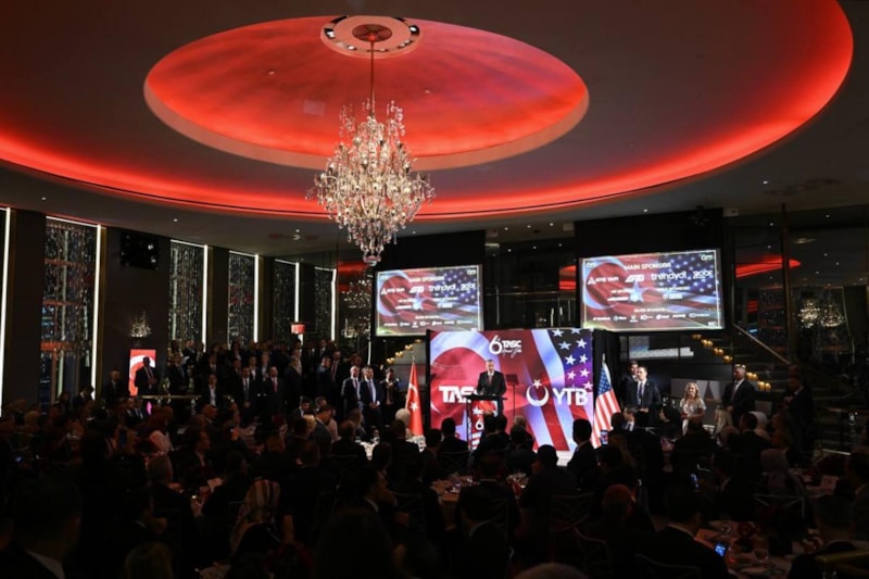 Burada ikili görüşmeler gerçekleşen Cumhurbaşkanı Erdoğan, Türk-Amerikan Ulusal Yönlendirme Komitesi (TASC) tarafından Rockefeller Plaza'da düzenlenen akşam yemeğine eşi Emine Erdoğan ile katıldı.
