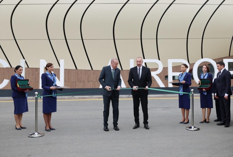Cumhurbaşkanı Erdoğan, Azerbaycan Cumhurbaşkanı İlham Aliyev ile birlikte Azerbaycan'ın işgalden kurtardığı topraklarda inşa ettiği üçüncü havalimanı olan Laçın Uluslararası Havalimanı'nın da açılışını yaptı.