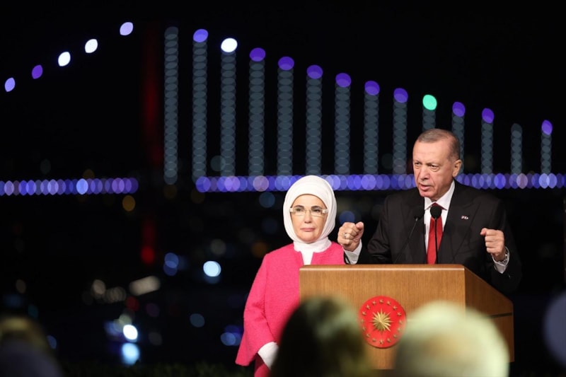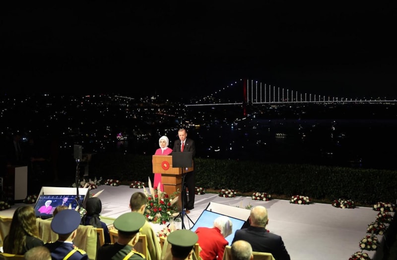 Daha sonra 100.Yıl hitabını tamamlayan Cumhurbaşkanı Erdoğan ve eşi Emine Erdoğan butona basarak Türkiye Yüzyılı'nı başlattı.