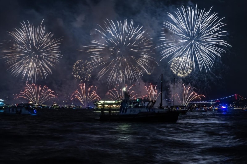 Cumhuriyet'in 100. yıl dönümü dolayısıyla havai fişek, ışık ve dron gösterileri düzenlendi.