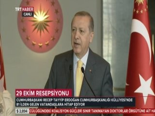 Cumhurbaşkanı Recep Tayyip Erdoğan, 29 Ekim Cumhuriyet Bayramı münasebetiyle 81 ilden gelecek vatandaşlara resepsiyon verdi.