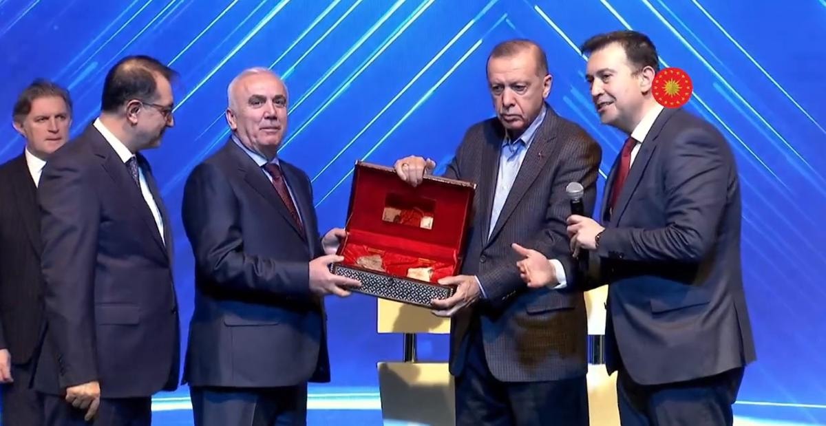 Maden yatağından çıkarılan, “Akbaştepe” ve “Korudanlık” adı verilen külçelerin hediye edildiği Cumhurbaşkanı Erdoğan, espriyi patlattı.