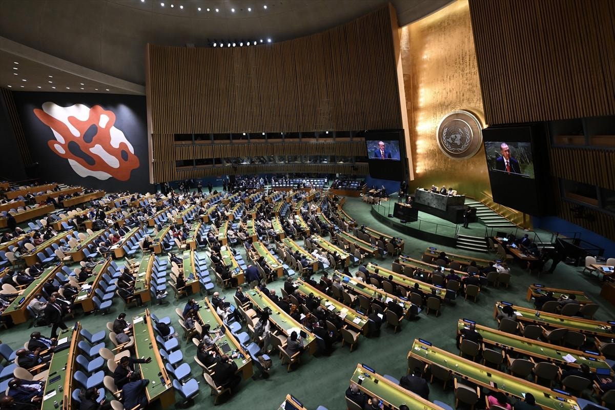 Genel kurulun bu yılki temasının Türkiye'nin hedefleriyle bire bir örtüştüğünü görmekten memnuniyet duyuyoruz. Cumhuriyetimizin 100. yılında hayata geçirmeye başladığımız Türkiye Yüzyılı vizyonumuz bu örtüşmenin en somut ifadesidir. Küresel adaletsizlikleri ortadan kaldıran, ekonomik eşitsizliklerin üzerine giden, barış, güvenlik, istikrar ve refah üreten, etkili, kapsayıcı ve insanlığı kucaklayıcı velhasıl tüm insanlığın hayrına bir uluslararası sistemin tesisi çağrımız giderek daha çok yankı buluyor. Genel Sekreter Sayın Guterres'in geçtiğimiz günlerde yaptığı 2. Dünya Savaşı sonrası kurulan kurumların bugünün dünyasını yansıtmadığı tespitine biz de katılıyoruz. Bu tespit bizim dünya 5'ten büyüktür çağrımızı ifade ediyor. Güvenlik Konseyi artık dünya güvenliğinin teminatı olmaktan çıkmış 5 ülkenin siyasi stratejilerinin çarpışma alanı haline gelmiştir.