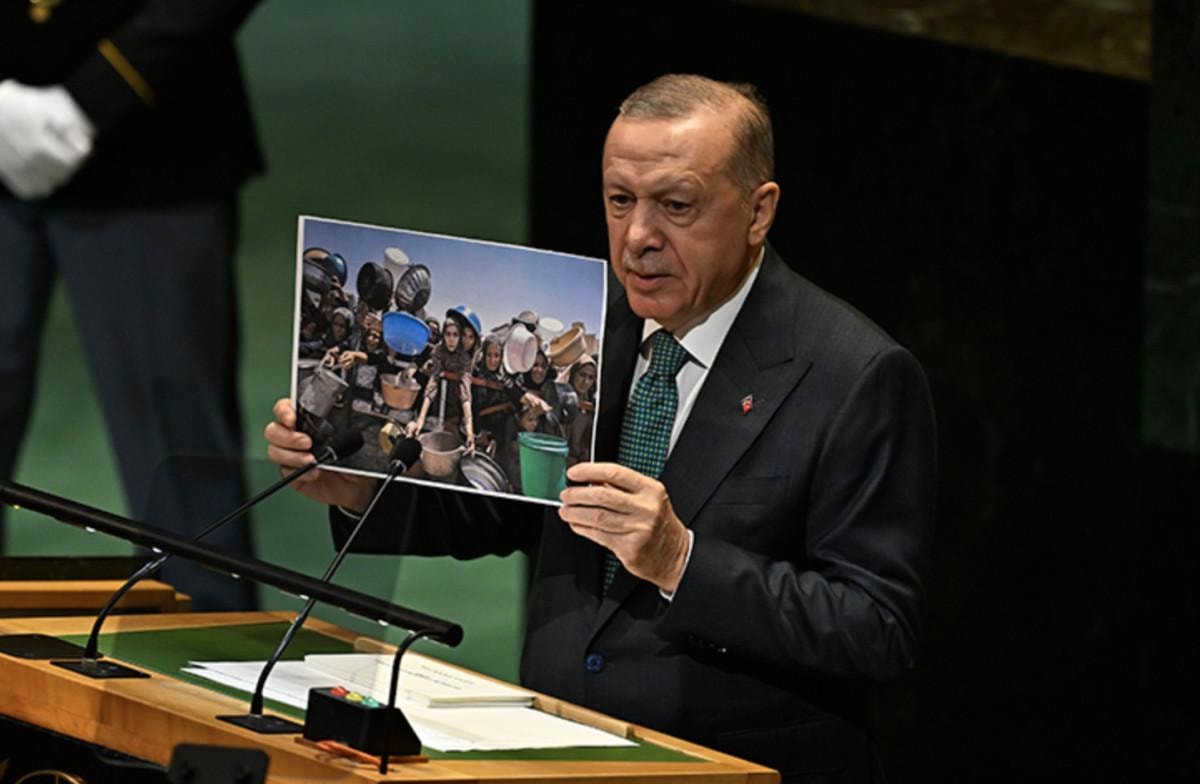 Konferans için yayımlanan kitapçıkta, Cumhurbaşkanı Erdoğan'ın Birleşmiş Milletler Genel Kurulu'ndaki tarihi konuşmasına, "Daha adil bir dünya mümkün" başlığıyla yer verildi.