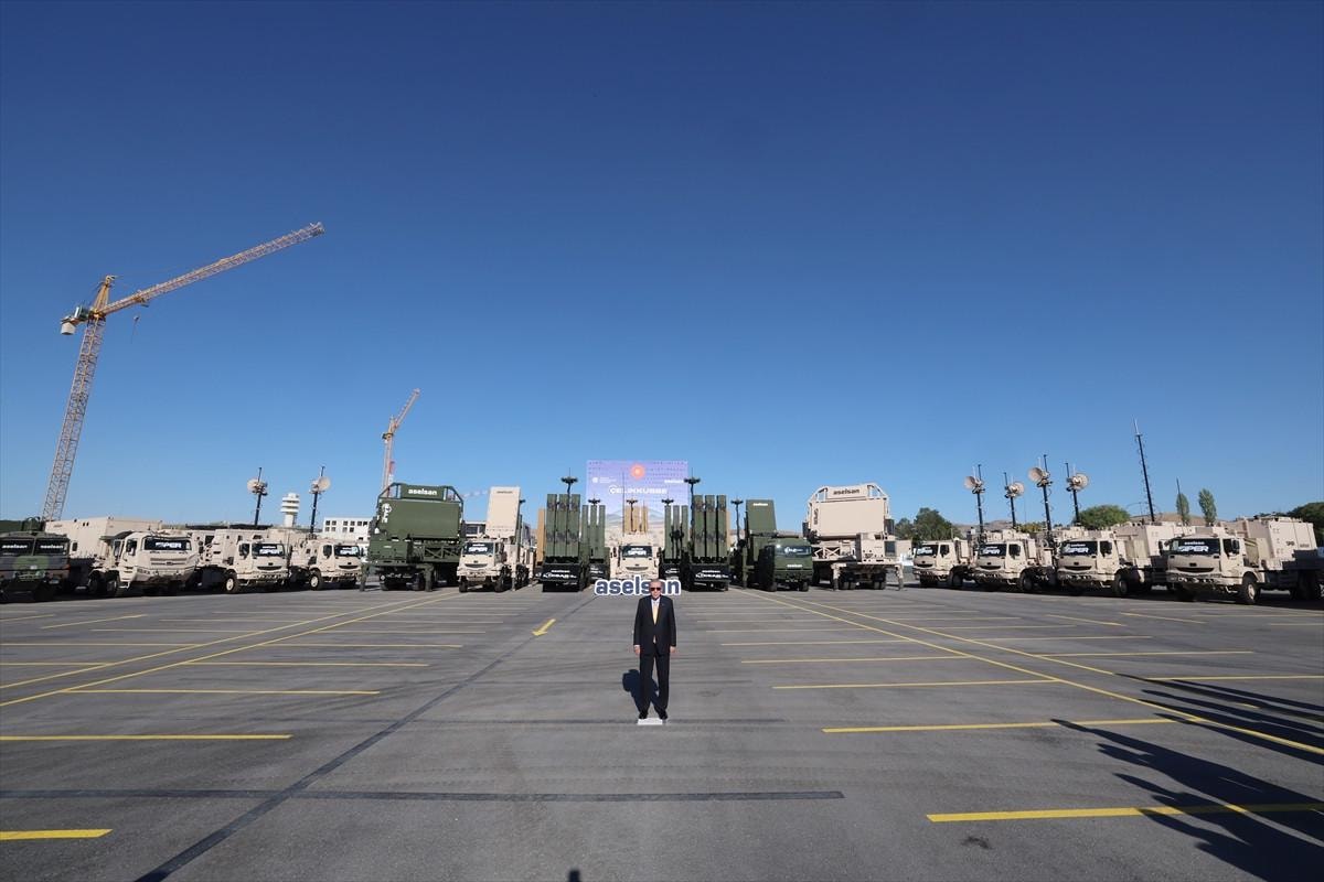 Cumhurbaşkanı, bu tarihi duyurudan önce envantere giren Türk savunma sanayiinin gözbebeği sistemlerle poz verdi.