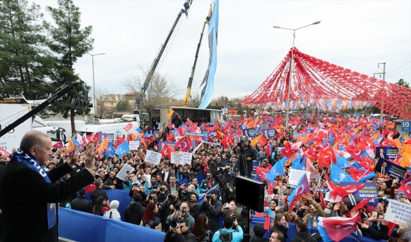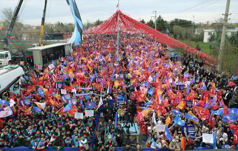 Onlar baskıyla, tehditle can alarak iradenizi haczederken biz hak ve özgürlükleri genişleterek eşi benzeri görülmemiş reformlarla demokrasiyi güçlendirmedik mi? Bu söylediklerimi doğruysa gelin yeni dönemin kapılarını birlikte arayalım. Gelin gönül gönüle verip Türkiye Yüzyılı’nı inşa edelim. Bugün de Diyarbakır’a 21 yıldır yürüttüğümüz demokrasi ve kalkınma atılımlarımızın yeni bir safhasında desteğini istemeye geldik. 31 Mart’ta burada partiler yarışmıyor, burada yarışan eser ve hizmet siyasetiyle kirli pazarlık siyasetidir.