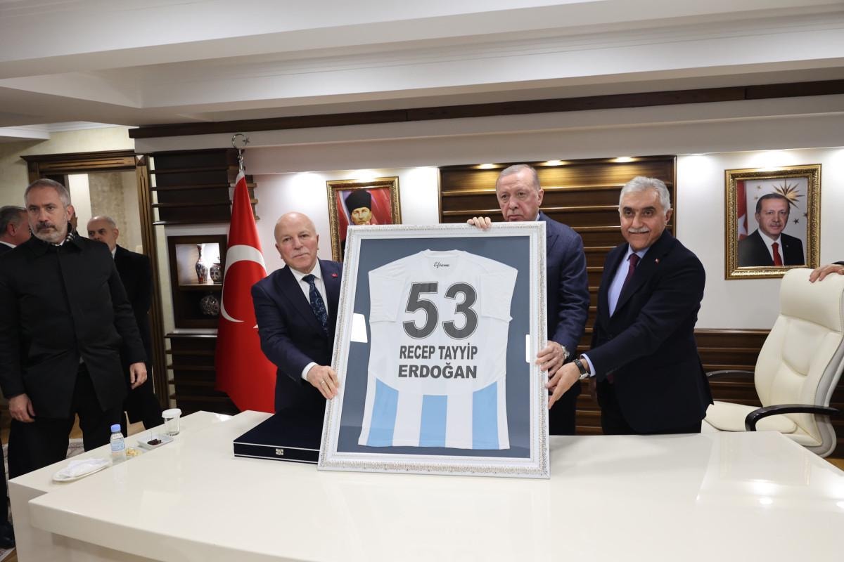 Kentte temaslarını sürdüren Erdoğan, Bilim Erzurum’da düzenlenen Gençlik Buluşması sonrası Erzurum Büyükşehir Belediyesi’ni ziyaret etti.