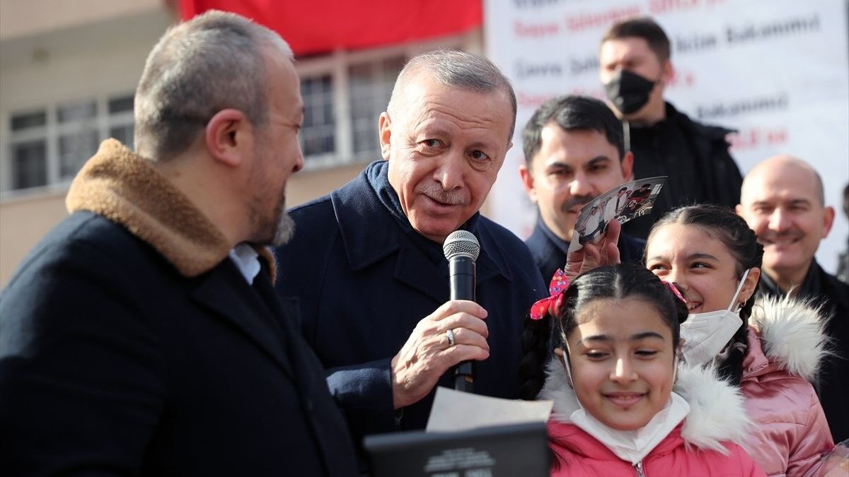 Erdoğan, yeniden inşa edilen konut ve iş yerlerinin anahtar teslimi için yapılan törene katıldı. "Burada güzel bir çalışma yapıldı. Biz, inşa ve ihya için varız" diyen Erdoğan, projede emeği geçenlere teşekkür etti.