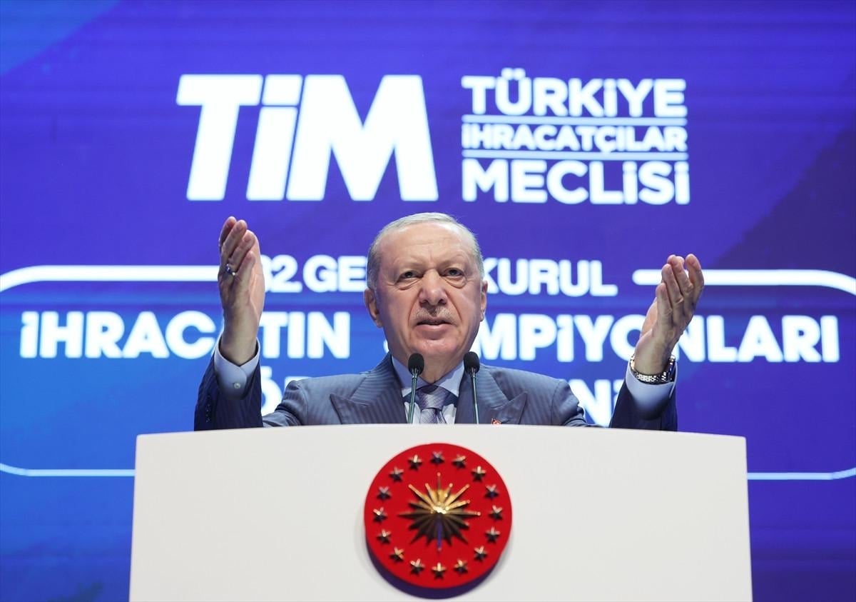 Türk dizileri 250'yi aşkın ülkede 800 milyondan fazla kişiye ulaşıyor. Dizileri izleyerek Türkçe öğrenmiş gençlerle karşılaşıyoruz. Salgınlar, savaşlar, krizler bunların hiçbiri bizi yolumuzdan geri koymadı. Türkiye'nin ihracatçıları asla geri adım atmadı. Sizin başarılarınız ilham kaynağı oldu. Sizden beklentimiz yalnızca üretmeniz, satmanız değil kutlu yürüyüşümüze eşlik etmenizdir. Nice başarıları birlikte yazacağız. Önünüze örülen duvarları birlikte aşacağız. Türkiye Yüzyılı ülkümüzü beraber gerçekleştireceğiz. Biz maraton koşucusuyuz, yükümüz ağır, yolumuz uzundur.