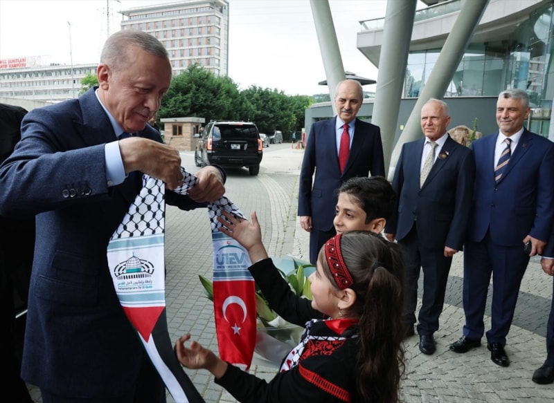 Samimi bir üzüntümü paylaşmak istiyorum. Geçen ay seçim yapıldı. Bu konuda büyük bir haksızlığa maruz kaldık. Filistin'e verdiğimiz destek gölgelemeye çalışıldı. İsrail'e jet satışı yapıldı iftirası yapacak kadar gözlerini kararttılar. Jet yakıtı gönderdiler kadar ahlak dışı bir sürü iddia gündeme taşındı. Sizin vicdanınız var mı ya? Ahlak dışı bir sürü iddia gündeme taşındı. Ülkemiz aleyhine kullanılması çok yaralayıcı, yaralandık. Bu propagandanın içinin boş olduğu görüldü. Onlar bu iftirayı atsalar da biz yolumuza aynı kararlılıkla devam ediyoruz.
