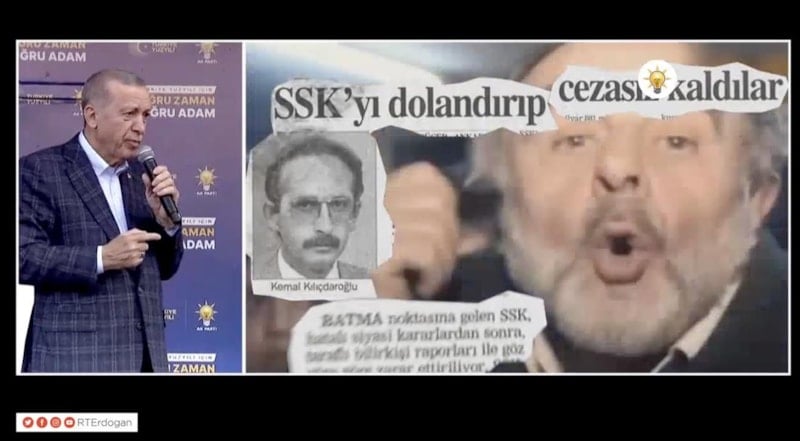 Kemal Kılıçdaroğlu'nun SSK Genel Müdürü olduğu dönemdeki icraatlarının anlatıldığı videoyu mitingde izleten Cumhurbaşkanı Erdoğan kalabalığa, "Tanıyor musunuz bunu? Nasıl bilirdiniz?' diye sordu.
