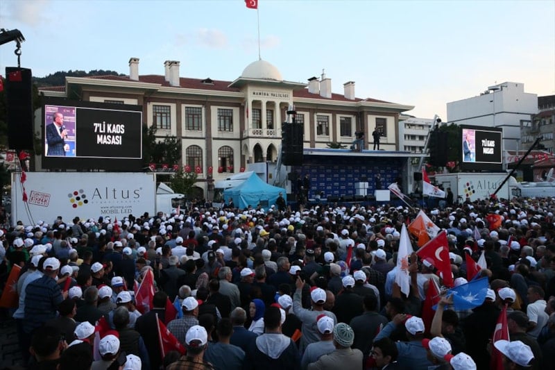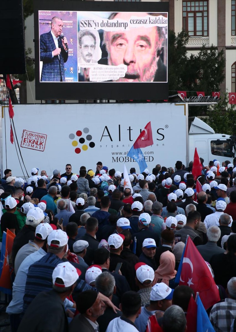 Gündemin ana başlıklarına değinen Cumhurbaşkanı, kalabalığa video izletti.