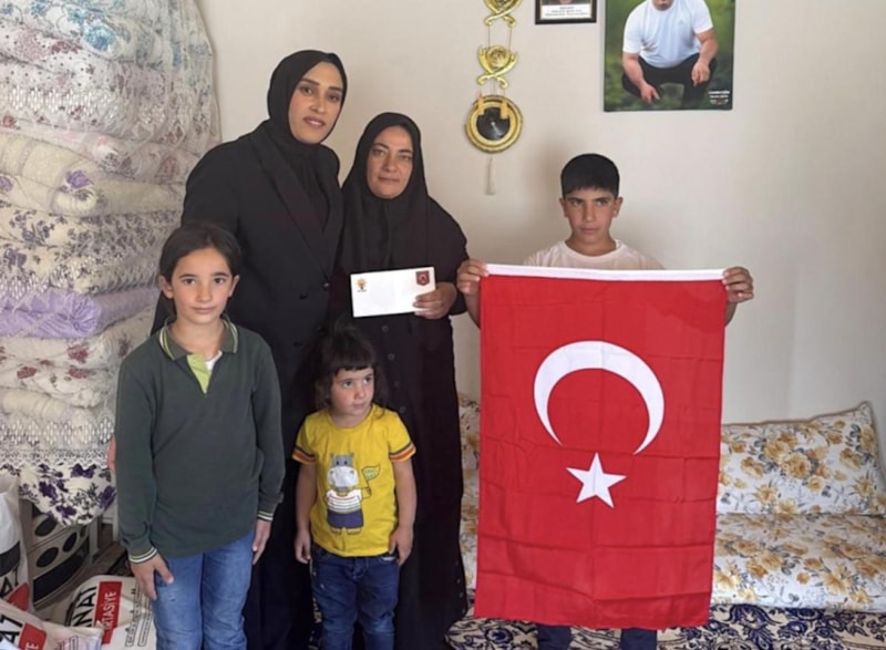 Şehidin eşi Aynur Şafak'a Türk bayrağı ve Kur'an-ı Kerim hediye eden Ilıkan, Cumhurbaşkanı Recep Tayyip Erdoğan tarafından şehit ailesine özel yazılan mektubu iletti.