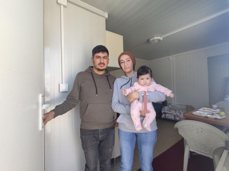 Depremde çok zor bir gün geçirdik ve çadır kente yerleştik. Ondan önce de 3 gün boyunca arabalarda yaşadık. Bebeğimle beraber çok zor bir süreç geçirdik. Sonrasında bebeğim olduğu için bizi buraya getirdiler. Şu an burası çok güzel, bebek açısından da iyi, iyiyiz burada.
